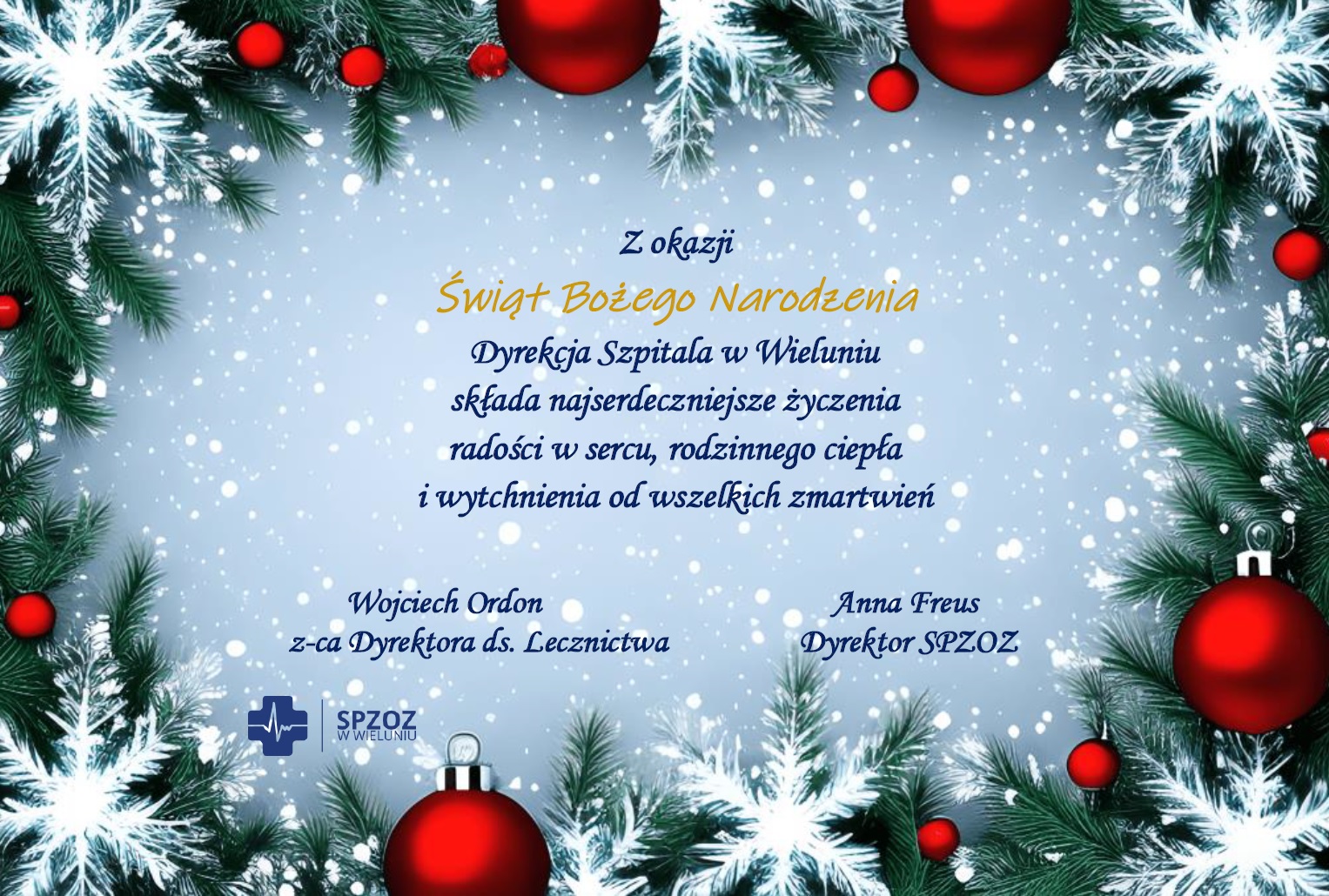 Z okazji Świąt Bożego Narodzenia Dyrekcja Szpitala w Wieluniu składa najserdeczniejsze…
