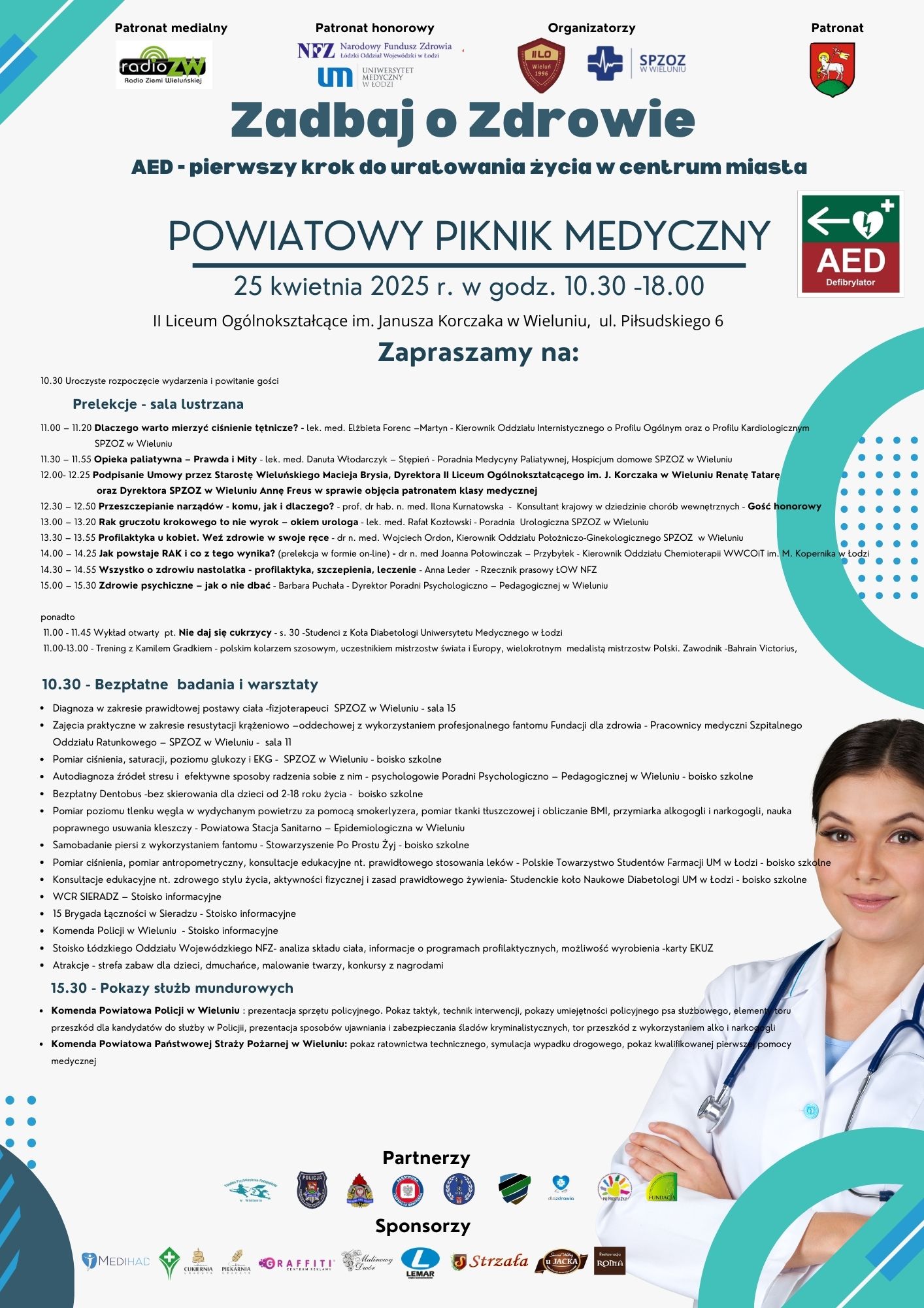 Serdecznie zapraszamy do wzięcia udziału w Powiatowym Pikniku Medycznym.