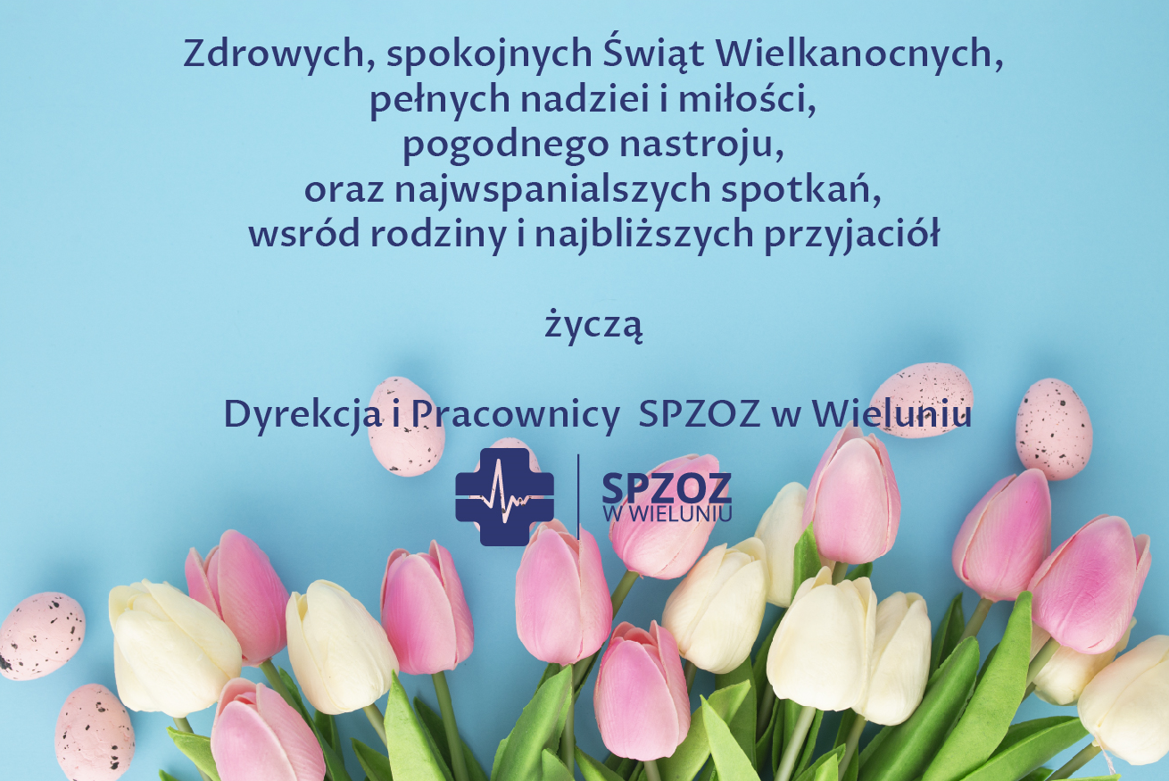 Zdrowych, spokojnych Świąt Wielkanocnych pełnych nadziei i miłości, pogodnego nastroju, oraz najwspanialszych spotkań, wsród rodziny i najbliższych przyjaciół życzą Dyrekcja i Pracownicy SPZOZ w Wieluniu