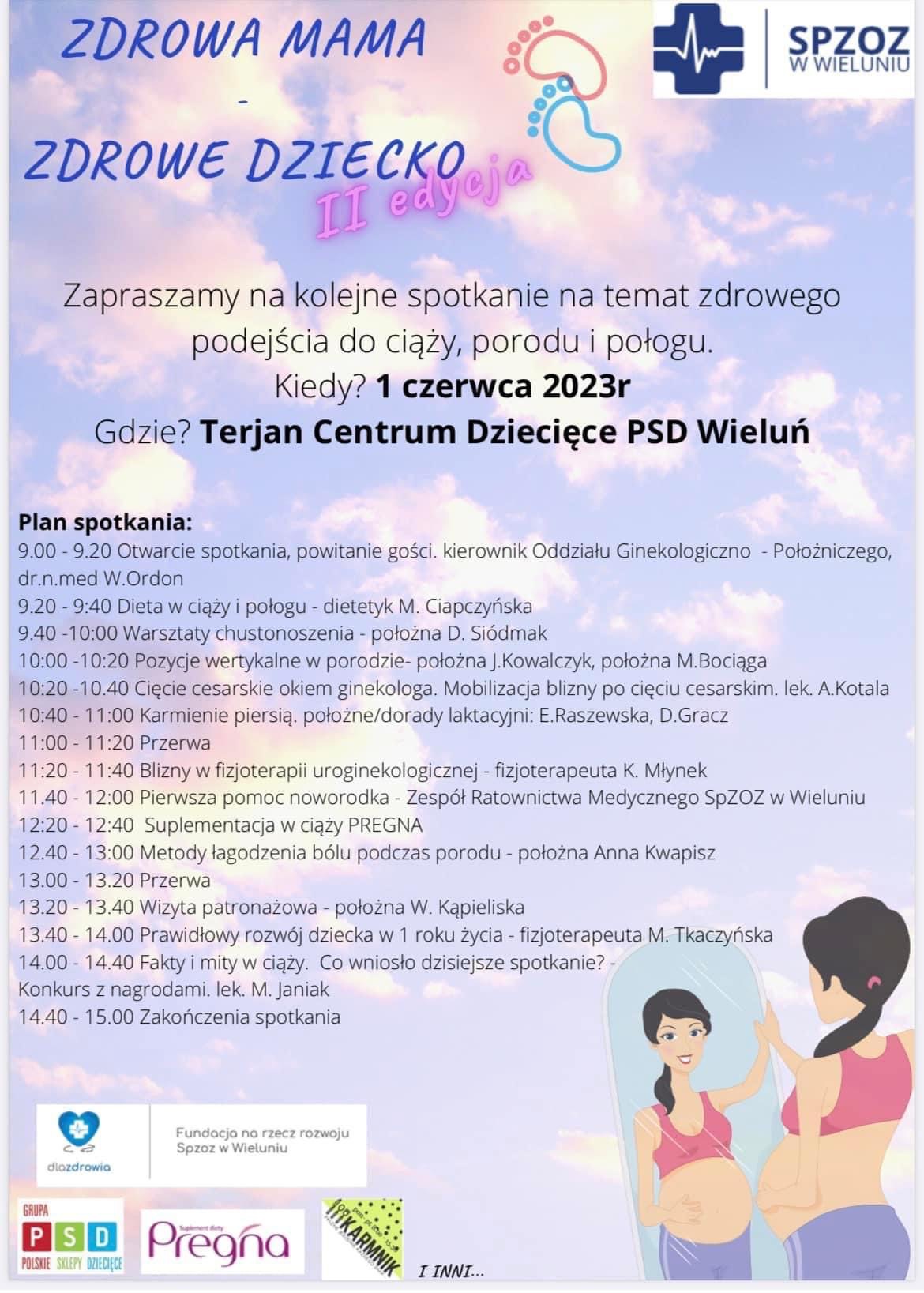 Organizatorzy zapraszają na kolejne spotkanie na temat zdrowego podejścia do ciąży, porodu i połogu. Kiedy? 1 czerwa 2023r Gdzie? Terjan Centrum Dziecięce PSD Wieluń
